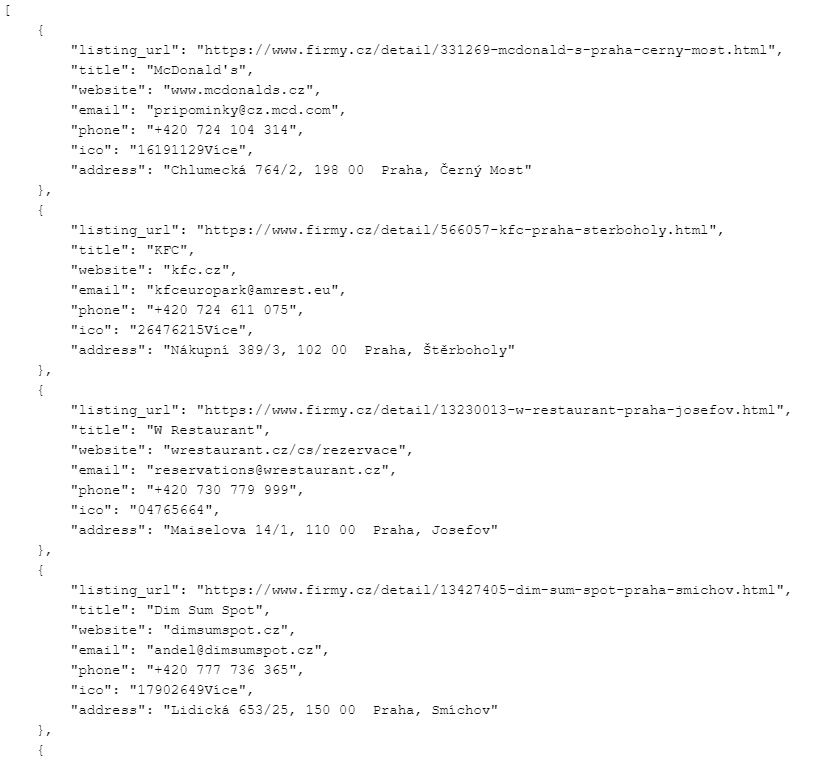 - Komplexní data: Obsahuje podrobné informace o restauracích, což umožňuje efektivní obchodní a marketingové aktivity.