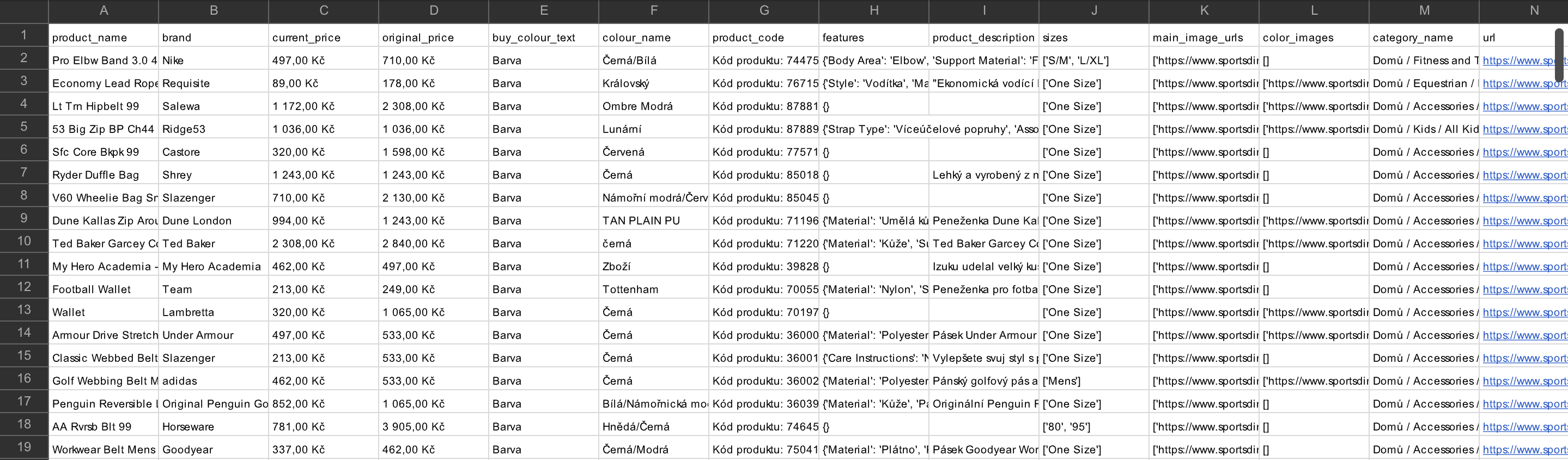 Naše společnost nabízí služby parsování dat, které umožňují efektivní sběr a strukturování informací z online zdrojů. Jedním z příkladů využití našich služeb je vytvoření databáze produktů z obchodu SportsDirect, jednoho z největších maloobchodních prodejců. Tato databáze obsahuje detailní informace o produktech, jako jsou: